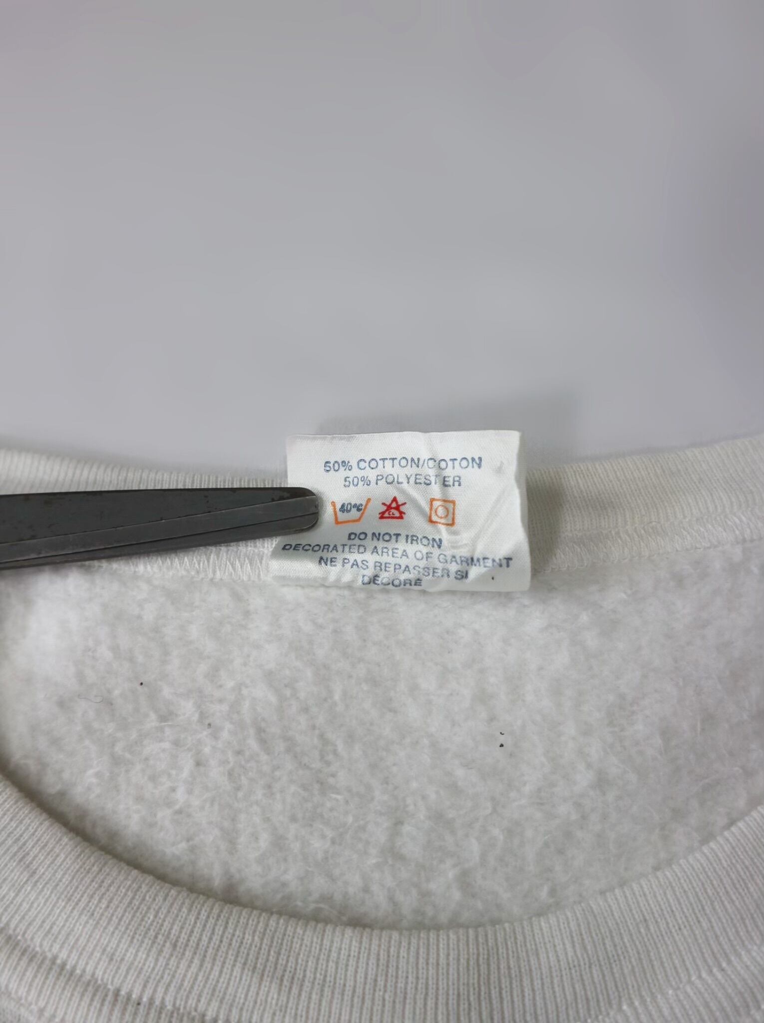 このスウェットは、カナダのアパレルメーカー「POSITIVE IDENTITY(ポジティブ・アイデンティティ)」製で、当時オンタリオ州ロンドンに拠点を置いていたブランドのものです。カナダ製のスウェットボディは、古着市場でも年々数が減ってきている希少な存在で、80年代〜90年代初頭のイベントや企業向けのプリントウェアによく使われていました。
