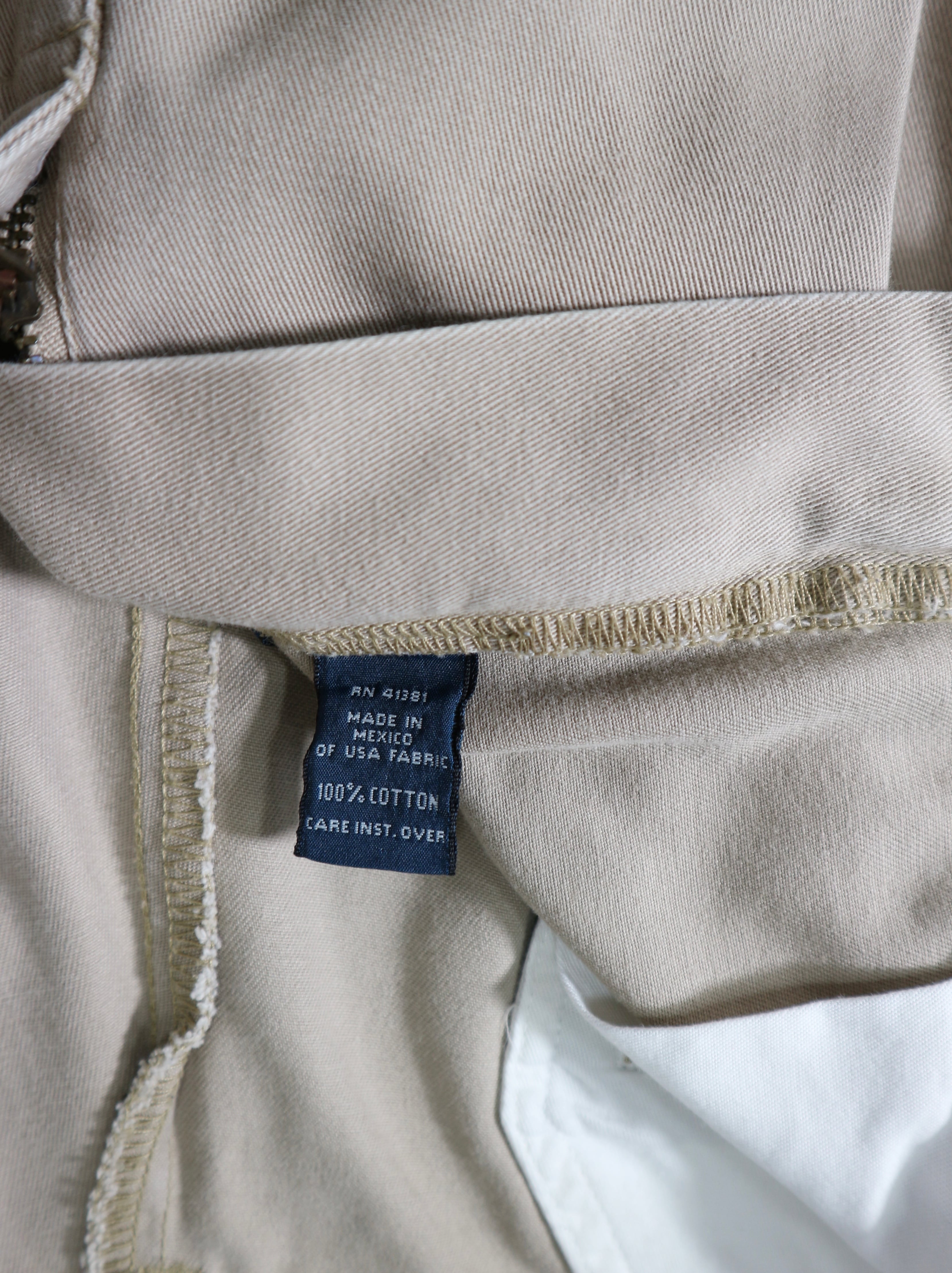 アメリカントラッドを象徴するRalph Laurenが手がけるカジュアルライン「Polo by Ralph Lauren」からリリースされた、クラシックスタイルのチノパンツ。ウエスト内側に縫い付けられた「CLASSIC CHINO」ラベルと、USA製の生地を使用しメキシコで縫製されたことを示すタグにより、1990年代後半〜2000年代初頭にかけて製造されたモデルと推定されます。
