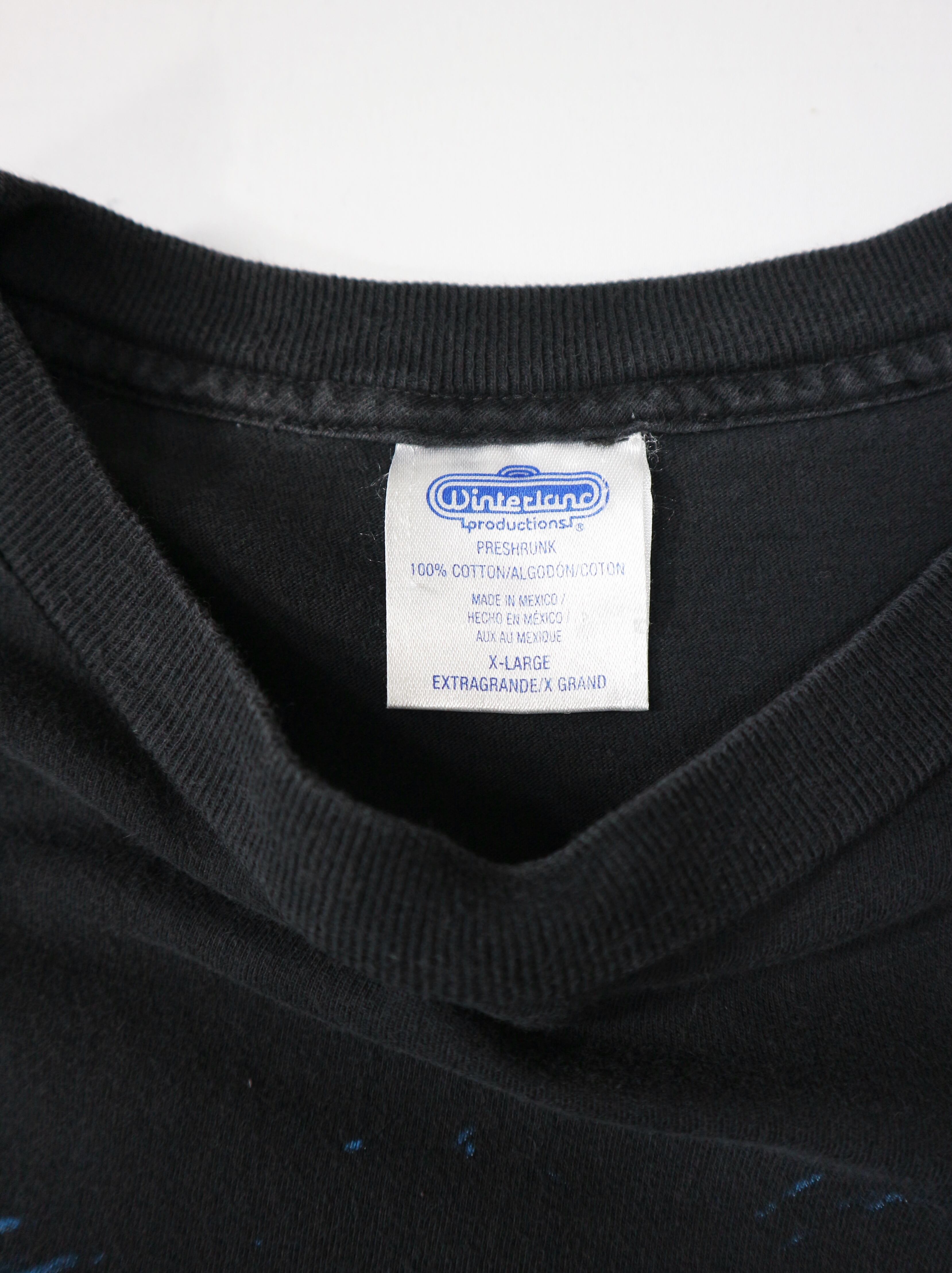 メキシコ製のWinterland製ボディを使用し、素材は100%コットンのプレシュリンク仕様。Winterlandは1970〜90年代にかけて、数多くの伝説的ミュージシャンの公式マーチャンダイズを手掛けた老舗ブランドで、ヴィンテージバンドTシャツ市場では高い評価を受けています。