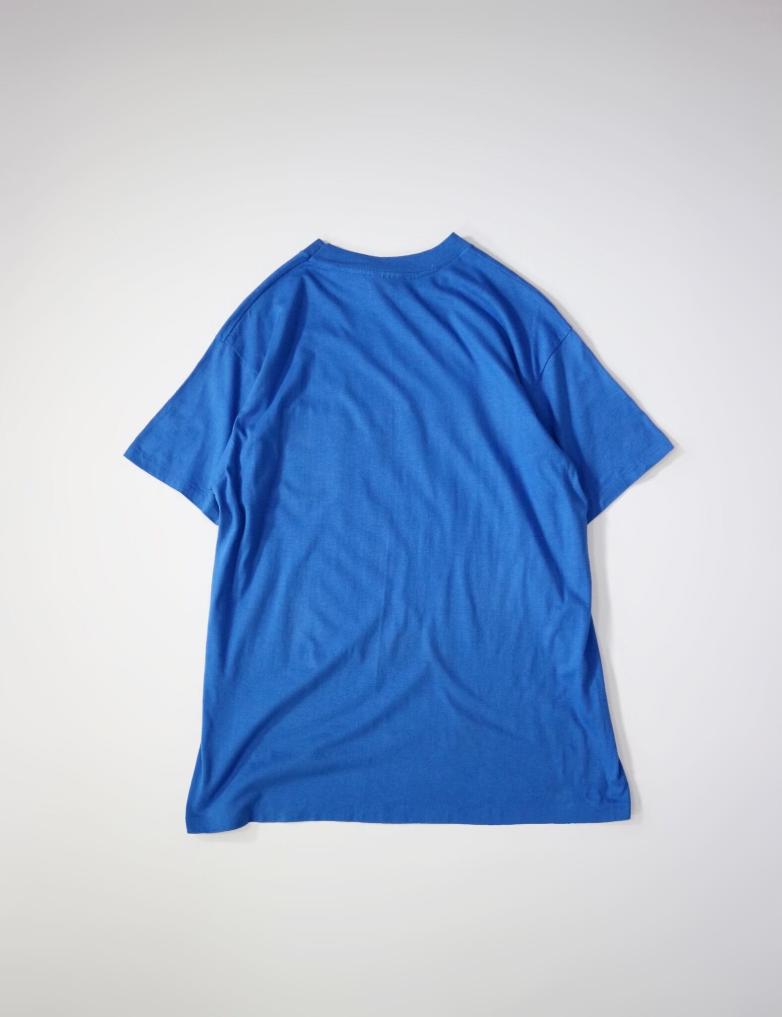 アメリカの老舗ボディメーカー「Hanes(ヘインズ)」のFifty-Fifty(50%コットン/50%ポリエステル)・Made in USAタグが付属した一枚で、タグの字体と仕様から1980年代後半の製造と判断されます。